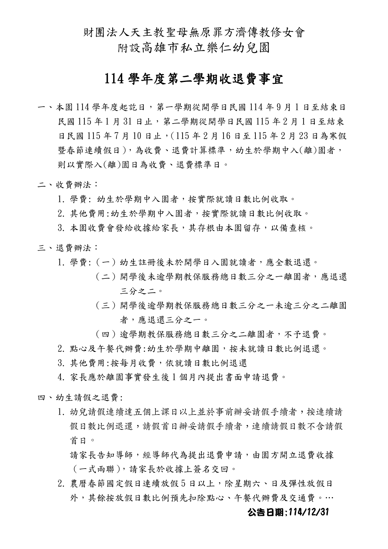 收退費注意事項資料名稱