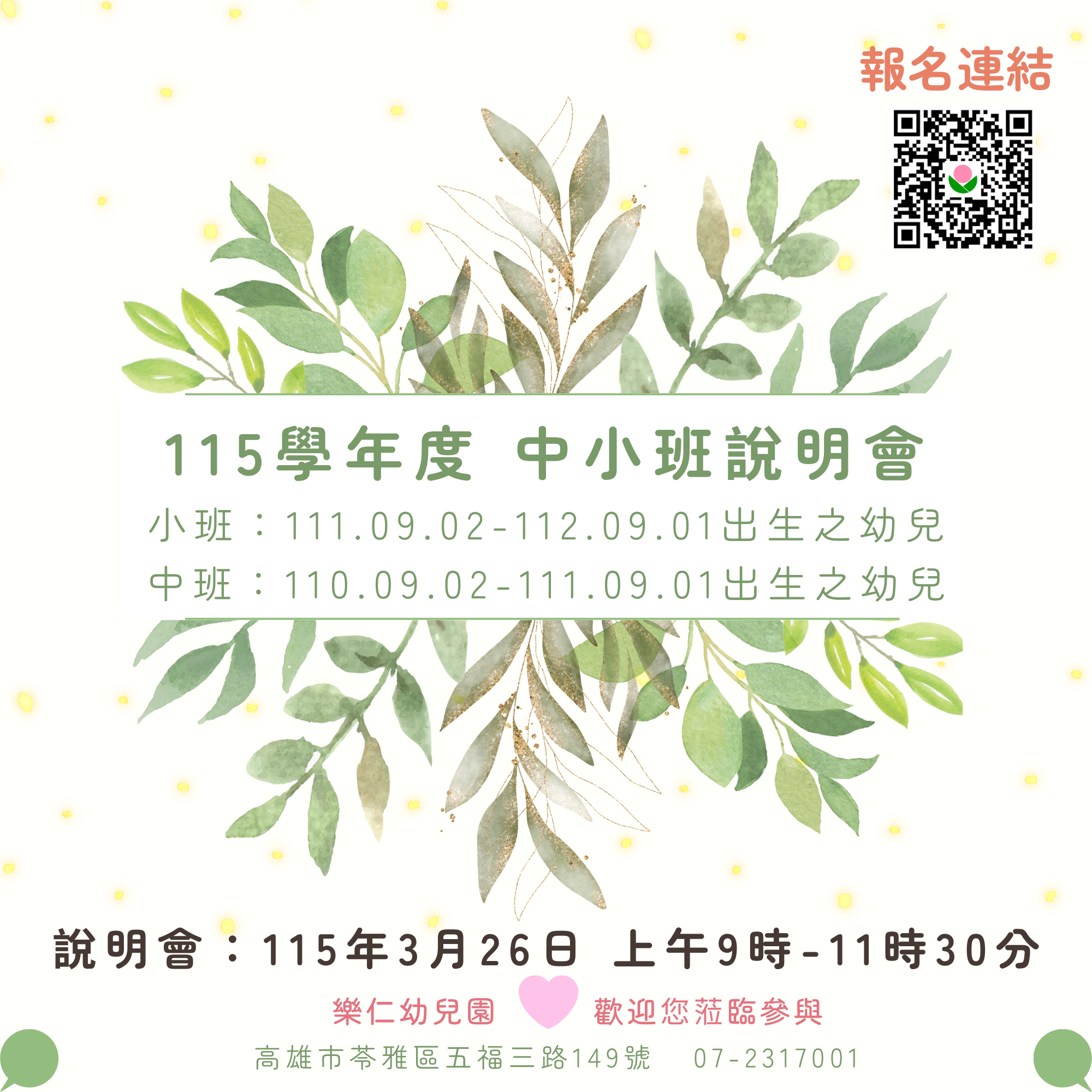 3月26日【115學年度中小班新生說明會】